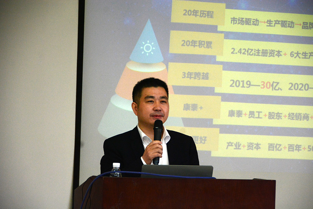 副總裁鄭光鏵的動員講話結合PPT進行,生動形象的向銷售生力軍介紹了康泰的基本情況、發(fā)展戰(zhàn)略、人才戰(zhàn)略和營銷戰(zhàn)略。表示,希望銷售生力軍盡快了解康泰、熟悉產品、掌握營銷的工具和打法,盡快走向營銷市場,開展實戰(zhàn),創(chuàng)造業(yè)績,實現人生價值。