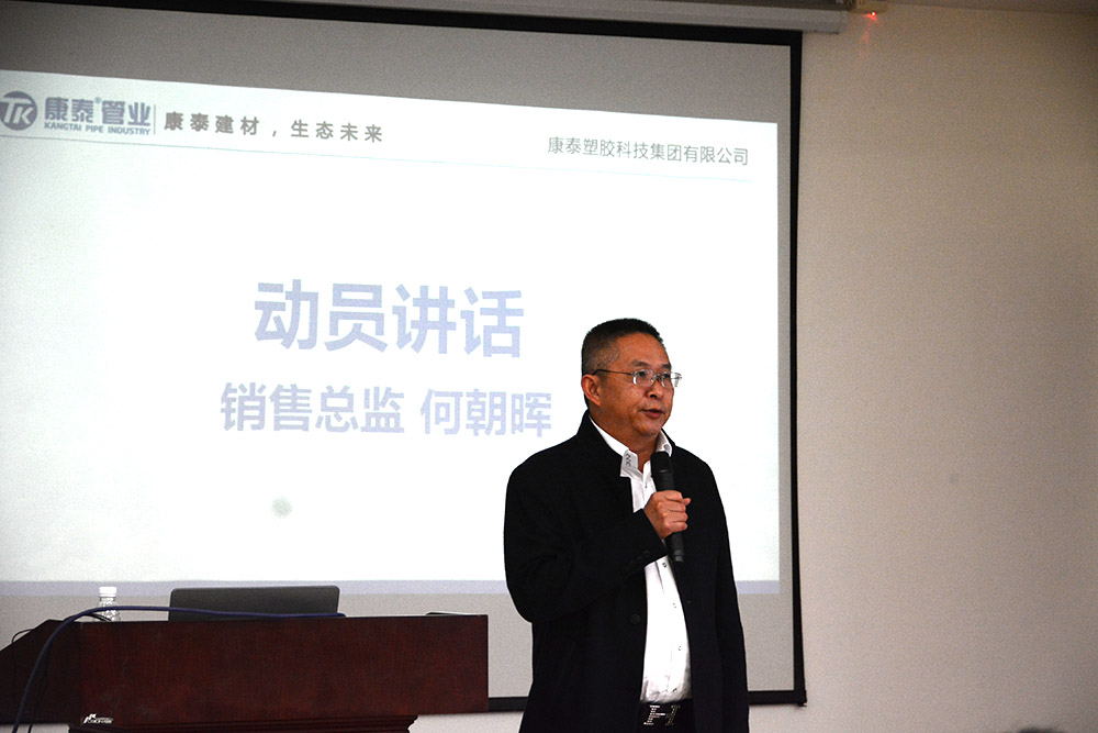 銷售總監(jiān)何朝暉在動員講話中首先對銷售生力軍的加入表示了歡迎。并表示,做營銷,首先要了解產品,更要全面熟悉、了解康泰的發(fā)展歷程、企業(yè)文化和發(fā)展戰(zhàn)略,聚焦塑膠管道未來的發(fā)展趨勢,做到戰(zhàn)必勝,勝必果。
