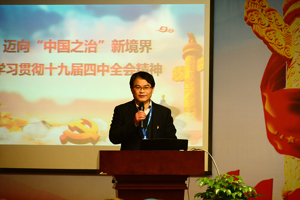 在近1小時的講座中,成都市第十七屆人大代表周云圍繞“為什么黨的十九屆四中全會要以國家制度和國家治理體系建設為主題、并集中全黨智慧深入研究這個問題”“怎樣正確認識和把握黨中央對《決定》稿的總體考慮、基本框架和總論部分的核心要義”“怎樣正確把握《決定》分論部分‘十三個堅持和完善’”等問題,深入闡釋了黨的十九屆四中全會的重大意義,深刻闡述了中國特色社會主義制度和國家治理體系的顯著優(yōu)勢,對《決定》提出的總體要求、總體目標和重點任務進行了系統(tǒng)解讀。