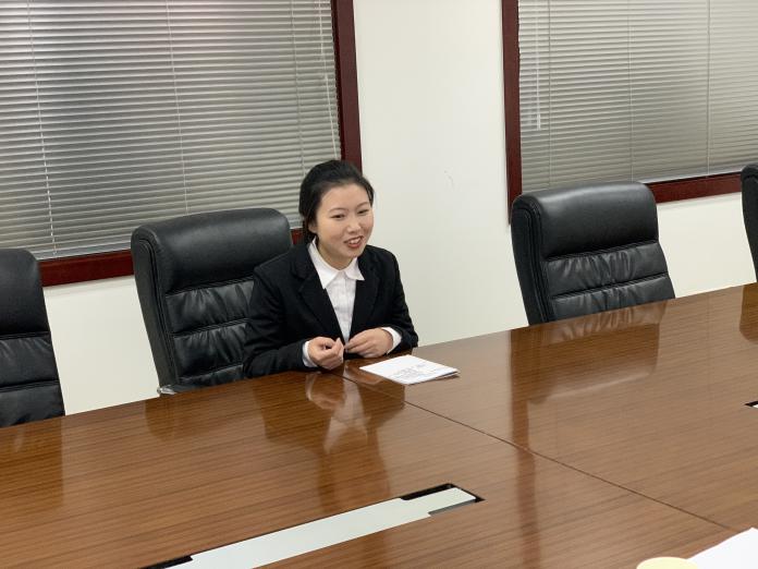 圖為銷售中心王珊向同學(xué)們講解公司榮譽