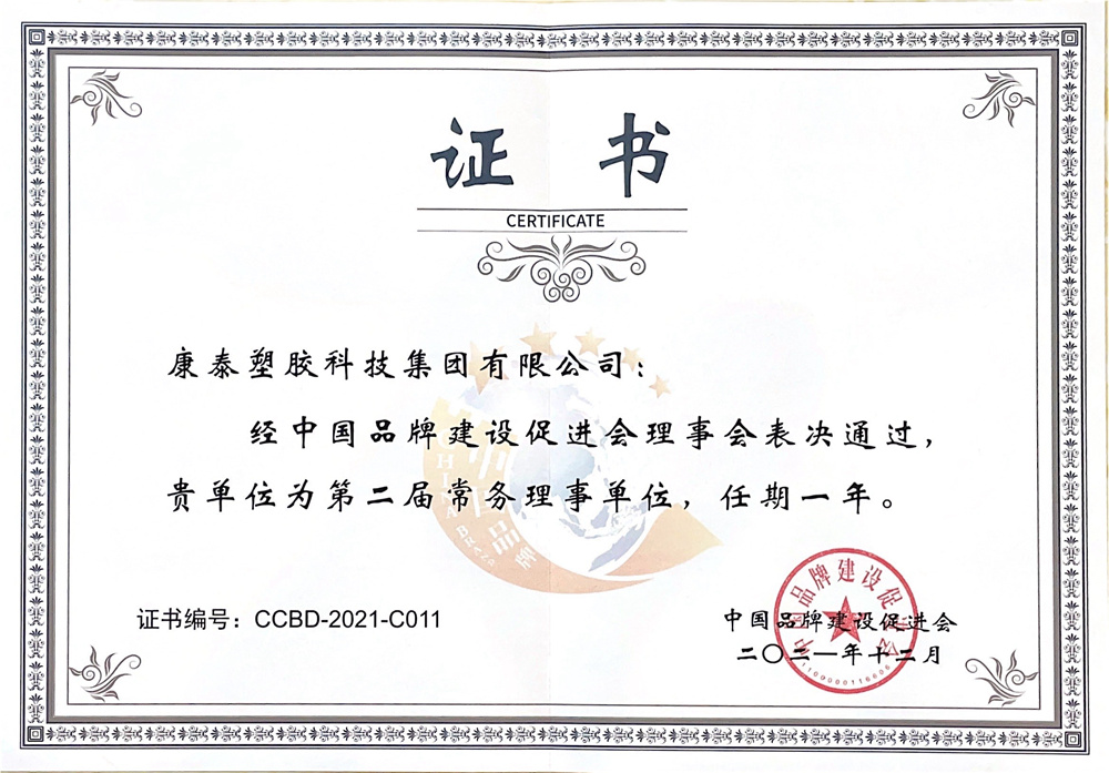 近日,經(jīng)中國(guó)品牌建設(shè)促進(jìn)會(huì)表決通過(guò),康泰塑膠科技集團(tuán)當(dāng)選為常務(wù)理事單位,任期一屆(2021-2022)。中國(guó)品牌建設(shè)促進(jìn)會(huì)是經(jīng)國(guó)務(wù)院同意、民政部批準(zhǔn)的唯一從事品牌工作的全國(guó)性社會(huì)團(tuán)體,旨在促進(jìn)中國(guó)品牌建設(shè)發(fā)展和提高產(chǎn)品質(zhì)量。