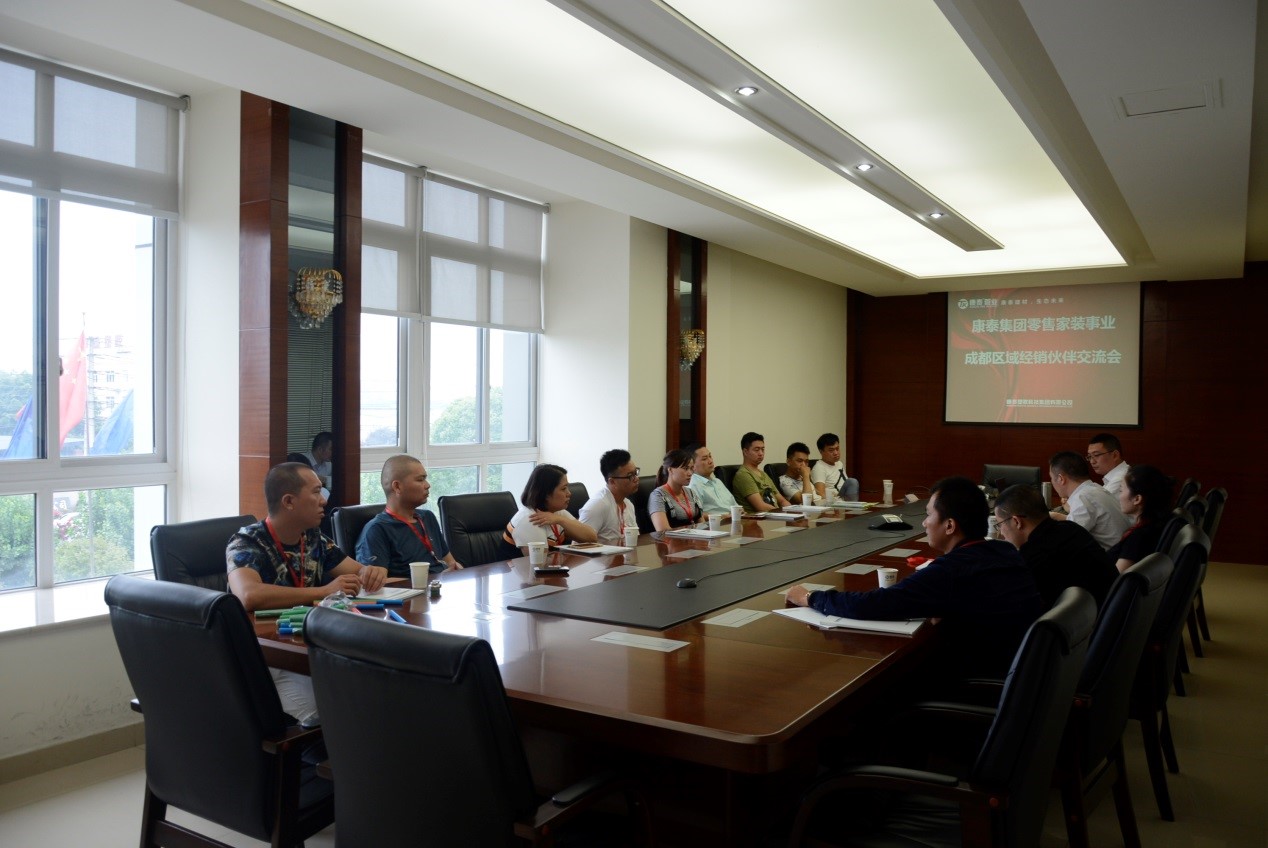7月8日,康泰集團零售家裝事業(yè)成都區(qū)域經(jīng)銷商交流會在集團總部大樓302會議室成功召開。會議當天,雖然驕陽似火,卻絲毫沒有影響此次交流會的效果。