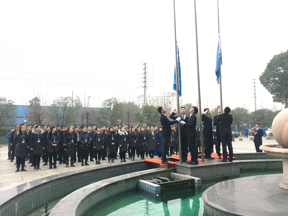 ? ? ??2月13日,新年開工后的第一次早會上,康泰集團在辦公樓廣場上舉行了隆重的新年升旗儀式。集團母公司中高層管理干部、車間主任、行政后勤人員等參加儀式。