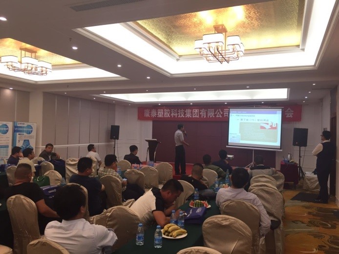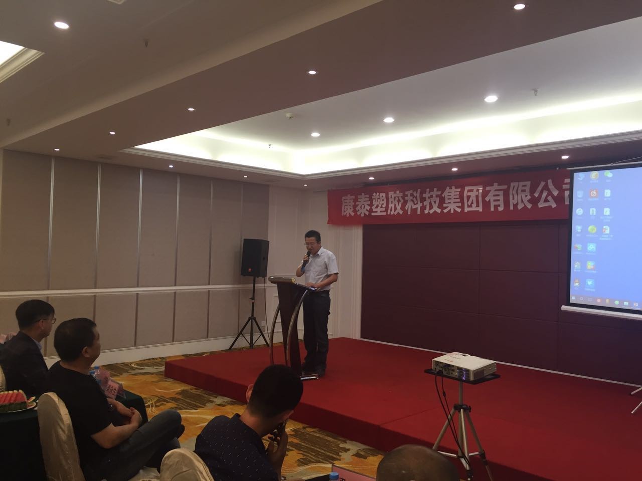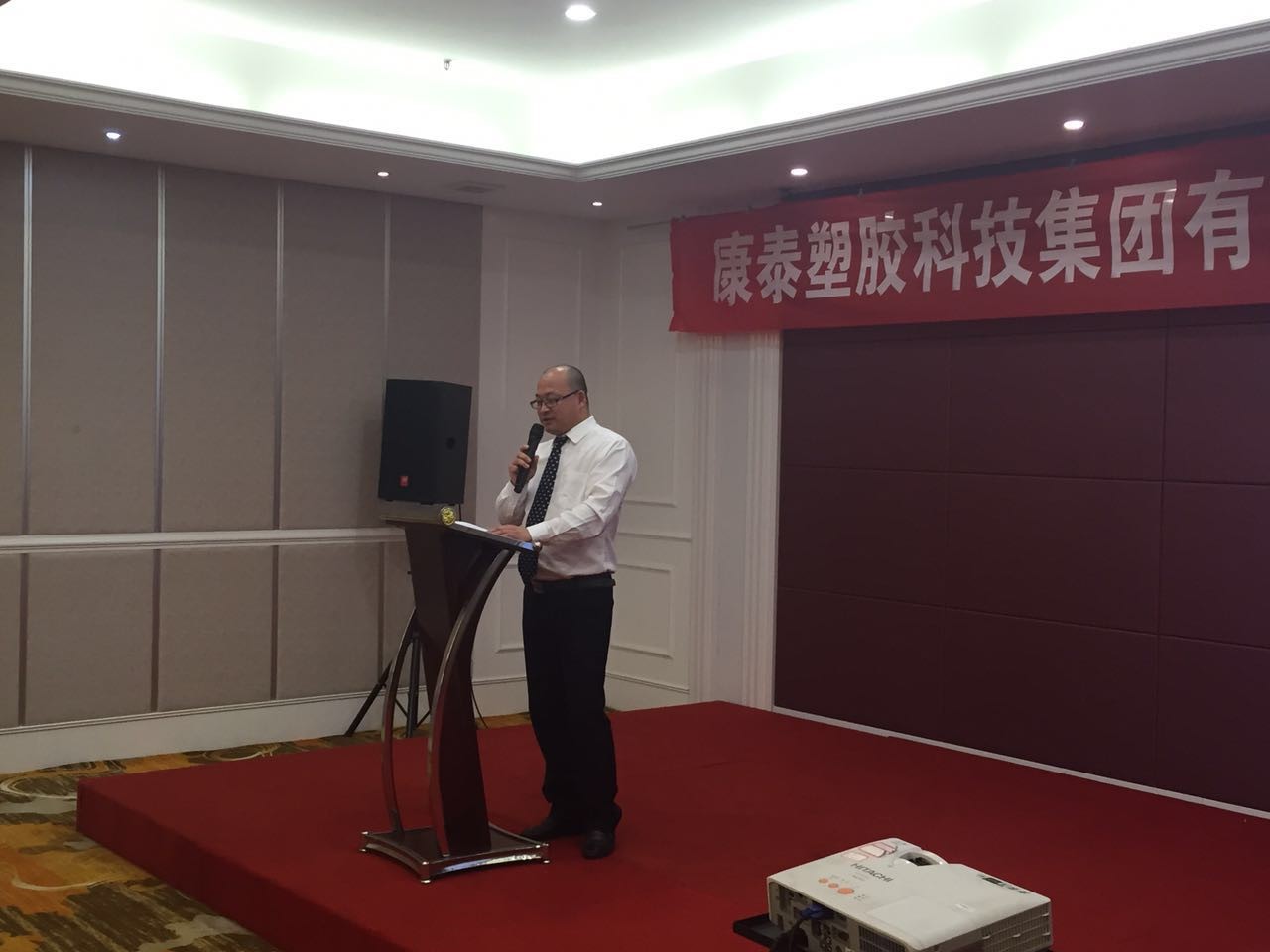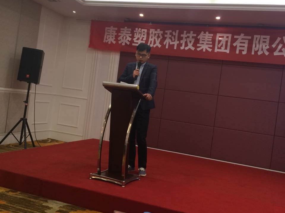 ? ? ? ?會(huì)上,康泰塑膠科技集團(tuán)河南基地生產(chǎn)負(fù)責(zé)人林化平圍繞康泰的多款新產(chǎn)品的優(yōu)點(diǎn)和特性,從設(shè)計(jì)理念、開(kāi)發(fā)背景、技術(shù)特點(diǎn)、產(chǎn)品原料、生產(chǎn)設(shè)備、性能對(duì)比、實(shí)驗(yàn)分析、應(yīng)用領(lǐng)域、工程案例等方面作了詳細(xì)的介紹。河南銷售分公司總經(jīng)理周建峰通過(guò)實(shí)際案例向各位來(lái)賓介紹了康泰集團(tuán)的品牌價(jià)值及產(chǎn)品銷售理念??堤┊a(chǎn)品商丘總代理梁輝先生也表達(dá)了對(duì)于康泰集團(tuán)的感謝以及對(duì)康泰產(chǎn)品和商丘市場(chǎng)的巨大信心。