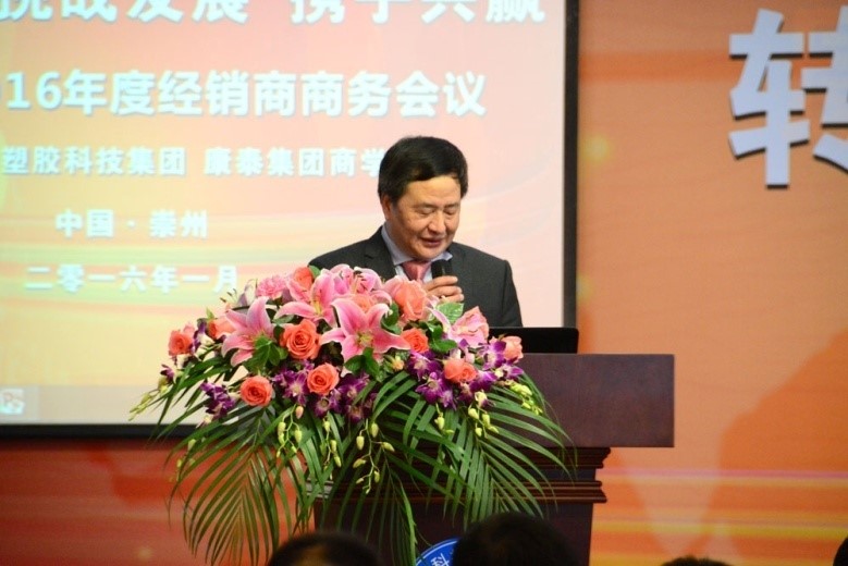 ?????? 一元復(fù)始,萬象更新。1月6日-7日,為期兩天以“轉(zhuǎn)型升級(jí)、挑戰(zhàn)發(fā)展、攜手共贏”為主題的康泰集團(tuán)2016年度經(jīng)銷商商務(wù)會(huì)議在集團(tuán)總部隆重召開??堤┘瘓F(tuán)董事長(zhǎng)兼總裁林云青,副董事長(zhǎng)葉日才及康泰集團(tuán)高管團(tuán)隊(duì)、子公司總經(jīng)理、區(qū)域經(jīng)理和來自全國(guó)各地的經(jīng)銷商代表等近200余人齊聚一堂,參加了本次會(huì)議。大會(huì)總結(jié)了康泰集團(tuán)2015年度營(yíng)銷工作和品牌塑造成果,發(fā)布了康泰集團(tuán)“市場(chǎng)導(dǎo)向、創(chuàng)新推動(dòng)、轉(zhuǎn)型升級(jí)、跨越發(fā)展”的第三個(gè)五年發(fā)展規(guī)劃和2016年的銷售目標(biāo),深入闡釋了公司營(yíng)銷“穩(wěn)定民建、發(fā)展市政、建設(shè)網(wǎng)絡(luò)、推廣新品、培育型材”的戰(zhàn)略和“轉(zhuǎn)型升級(jí)、規(guī)范提升、整合資源、抱團(tuán)發(fā)展”的2016總體定位和發(fā)展方向,堅(jiān)定了經(jīng)銷商們的信心,隨著國(guó)家“四化”建設(shè)和海綿城市、地下管廊的不斷發(fā)展,未來康泰也將迎來新的發(fā)展機(jī)遇。