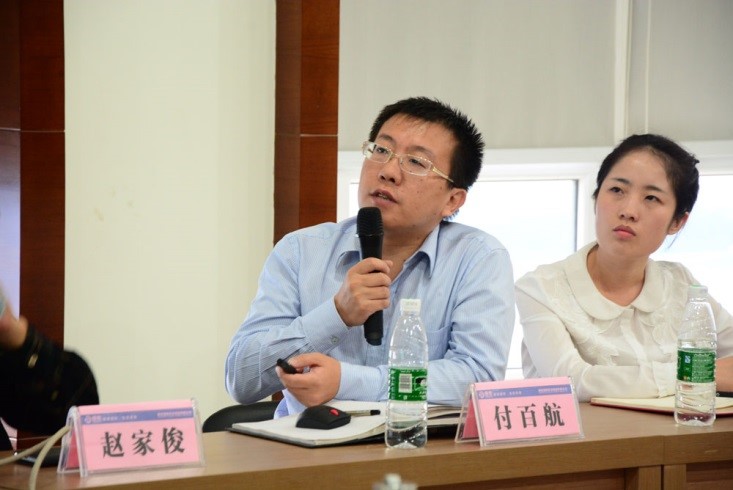 圖為北京正略鈞策管理顧問有限公司副總裁趙家俊和副總裁付百航在作介紹