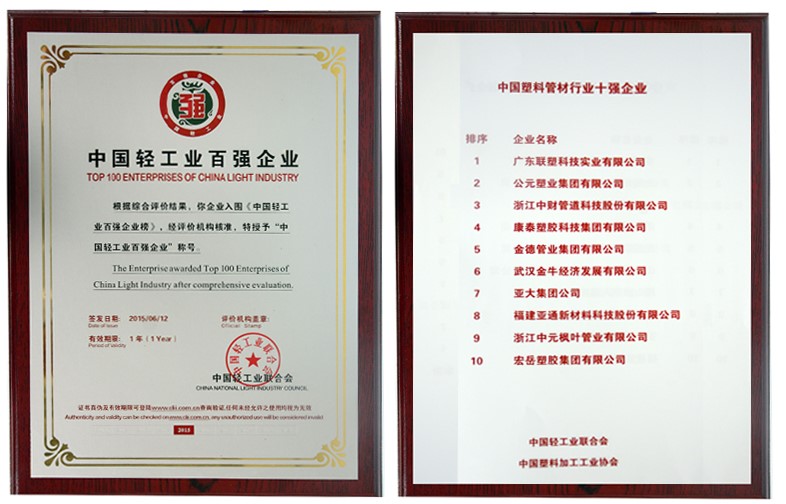 ?????? 康泰集團憑借其在中國塑膠管道行業(yè)出色表現(xiàn)得到了大會的充分肯定,被評為“2014年度中國輕工業(yè)百強企業(yè)”。同時,康泰還在本次會上被評為“中國塑料管材行業(yè)十強企業(yè)”。獲得此項殊榮的同行業(yè)還有聯(lián)塑、中財、公元。國家發(fā)改委、工信部、商務(wù)部、國資委、國家統(tǒng)計局相關(guān)領(lǐng)導(dǎo)出席會議,對“一帶一路”戰(zhàn)略、中國制造、“互聯(lián)網(wǎng)+”等議題進(jìn)行重點解讀,并對上榜企業(yè)進(jìn)行表彰。康泰集團北京分公司總經(jīng)理蔣華成代表公司參加會議并接牌。