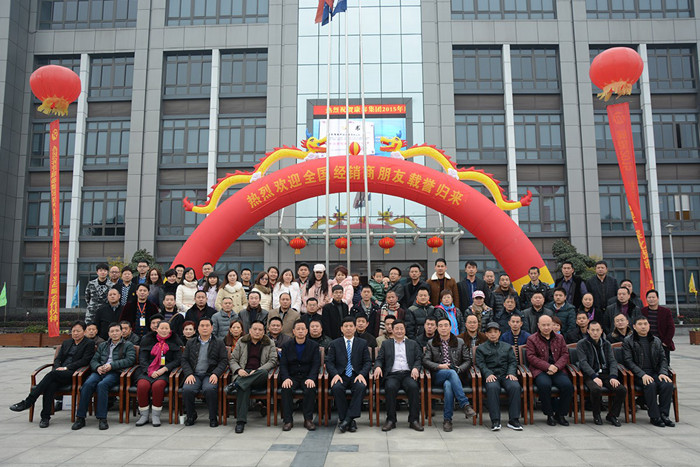 圖為公司領(lǐng)導(dǎo)與全體經(jīng)銷商合影