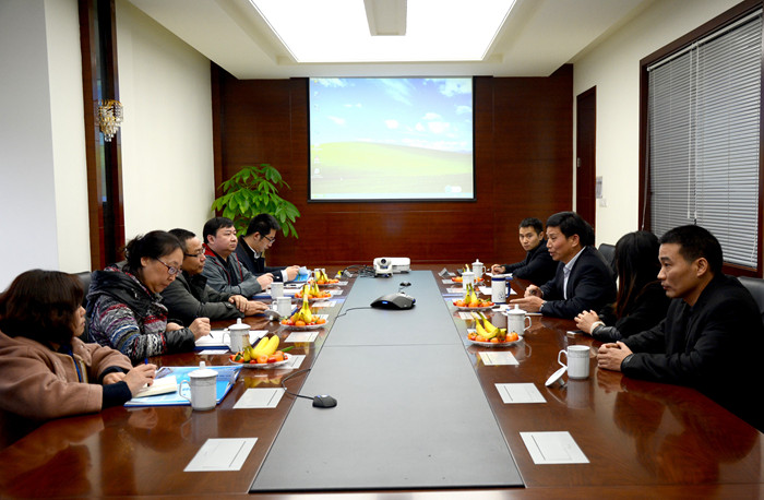 圖示:中石化系統(tǒng)領(lǐng)導(dǎo)一行與集團高層在302會議室座談現(xiàn)場