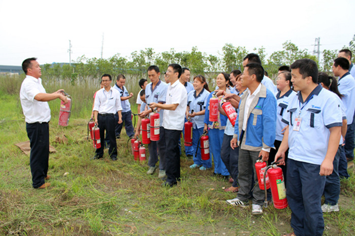 員工在實(shí)戰(zhàn)中學(xué)習(xí)滅火器的使用方法
