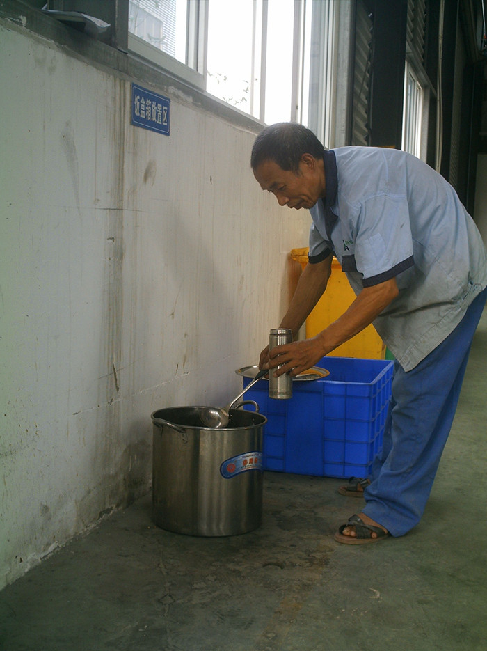 ??? 炎炎夏日,辛勤的員工們依舊堅(jiān)守在工作崗位。這時(shí),一杯綠豆湯能為他們清熱消暑,解除高溫帶給身體的疲憊。2013年8月22日,在管件車(chē)間,記者見(jiàn)到員工鄧火全正在舀綠豆湯,并向他了解夏季公司為員工準(zhǔn)備綠豆湯的具體情況。