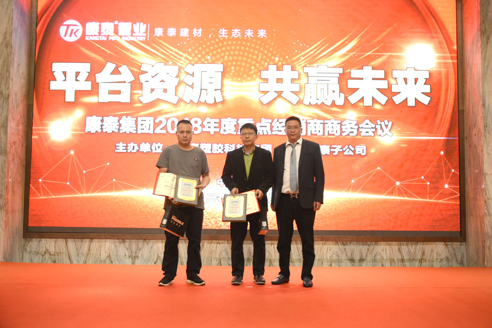 西安一航建材有限公司、貴州康泰管業(yè)有限公司、成都辰康商貿(mào)有限公司榮獲康泰集團(tuán)“2017年度戰(zhàn)略配送優(yōu)秀經(jīng)銷商獎”;