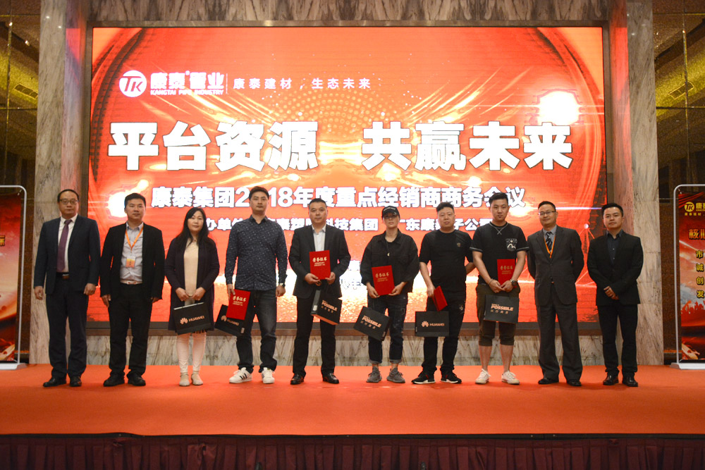 永順縣溪州廣源商貿(mào)有限公司、上海千族建材有限公司、南京源知來貿(mào)易有限公司、洛陽 葉玲、新鄭 丁秋云、吉林臺塑建材有限公司榮獲康泰集團(tuán)“2017年度新經(jīng)銷商成長獎”。