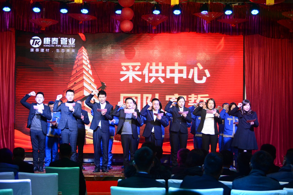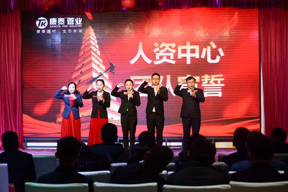 13時許,會議在雄壯嘹亮的《國歌》和《康泰之歌》中正式啟幕。大會共有五項議程分別是,對2018年的工作總結(jié)暨2019年度經(jīng)營規(guī)劃、表彰2018年度先進(jìn)個人和集體、舉行迎春文藝匯演、母公司各中心宣誓、聽取董事長對2019年的總體規(guī)劃和展望。