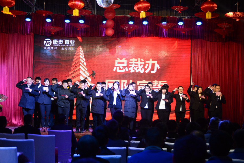 本次年會的主題是,凝聚發(fā)展 未來更好。凝聚發(fā)展:凝聚戰(zhàn)略、凝聚思維、凝聚目標(biāo)、上下貫通、發(fā)展共贏;未來更好:轉(zhuǎn)型升級、堅定戰(zhàn)略、優(yōu)化策略、強(qiáng)化執(zhí)行、未來更好。會議的目的是,總結(jié)2018年度的業(yè)績、亮點和不足,宣貫集團(tuán)五年戰(zhàn)略、三年規(guī)劃及2019年度重點工作方向;樹立標(biāo)桿、提升員工的凝聚力和歸屬感;同時,進(jìn)行宣誓、動員,激發(fā)全體康泰人奮發(fā)向前的氛圍及正能量。